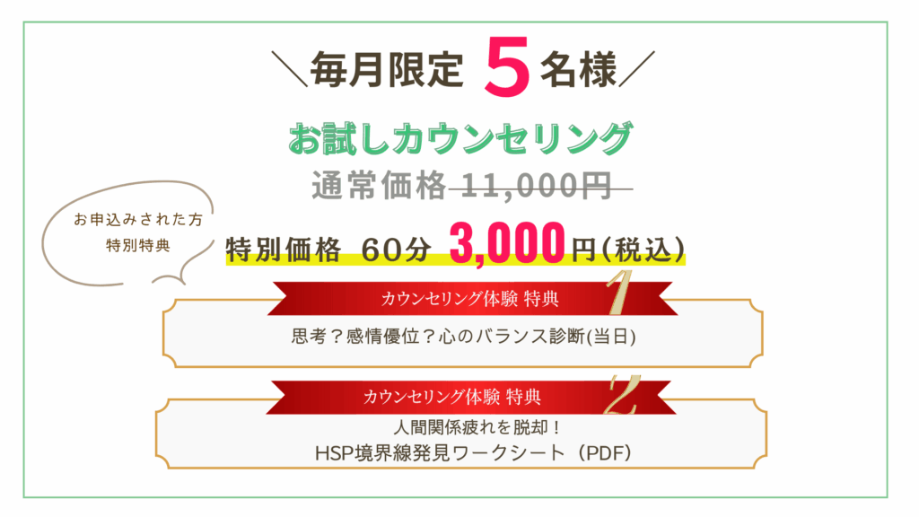 お試し価格は、毎月 5 名さまの先着順とさせていただいております。
